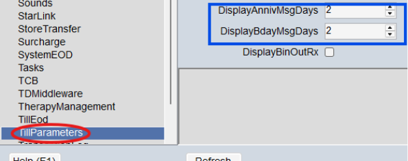 To set up this feature, go to Master Parameter, Till Parameters, and scroll to the fields shown in the screenshot below. Enter the number of days before and after the event you’d like the message to pop up on the till. In my example, the clerk will get the message 2 days before, on the day, and two days after for both anniversaries and birthdays. The system uses the Birth Date and Anniversary date fields in the Customer Editor.